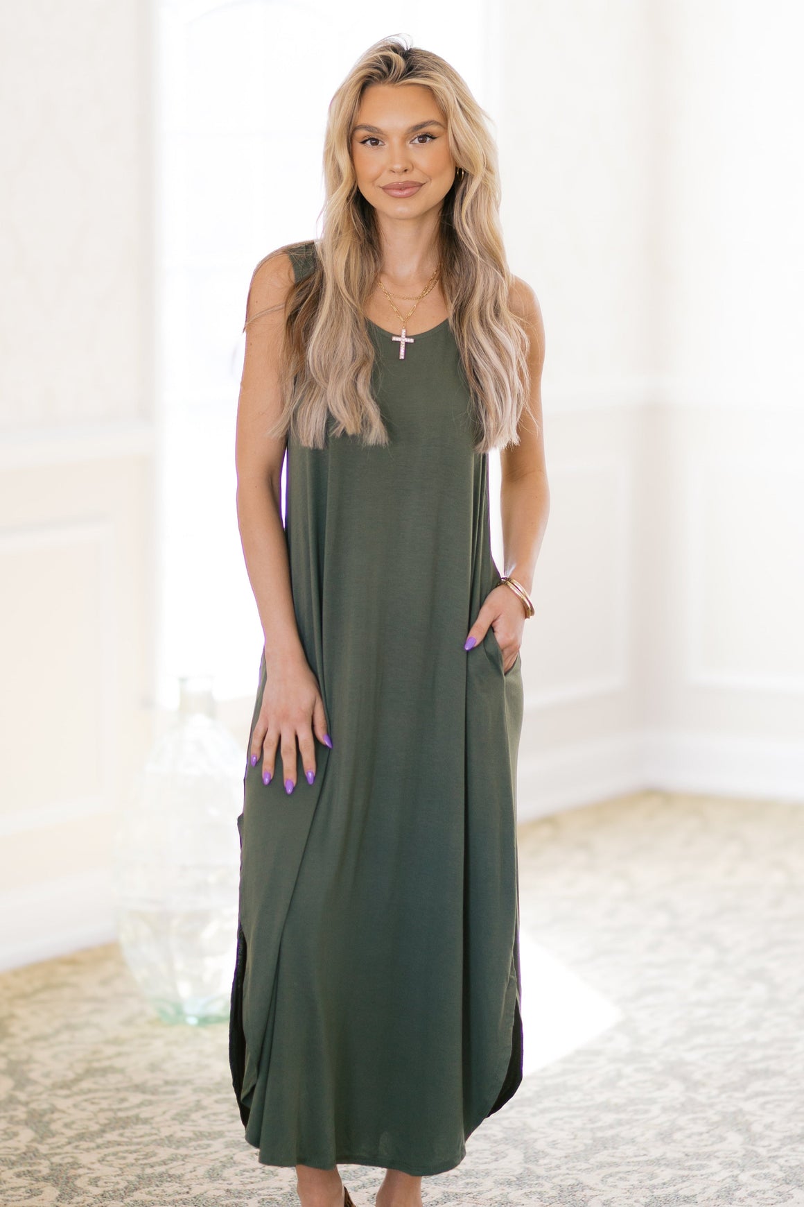 This flowy Sienna Sleeveless Dress is perfect for any occasion. With a scoop neckline, side...