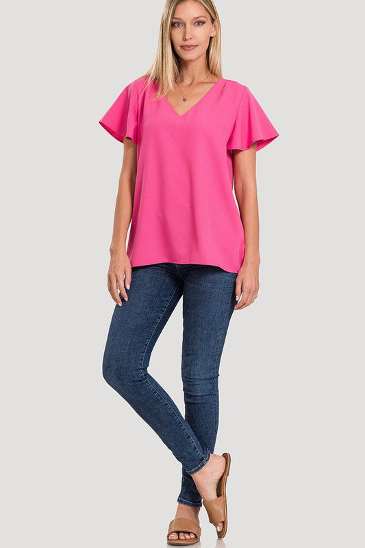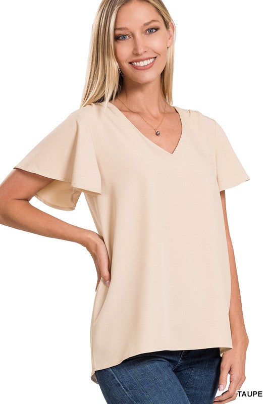 Stay chic and comfortable all day long in the Flutter Your Way To My Heart Blouse. Crafted from lightweight, woven fabric, this lovely blouse features flattering flutter sleeves and a V-neckline. Slip into this versatile piece for everyday wear, and let its effortless style take you anywhere!